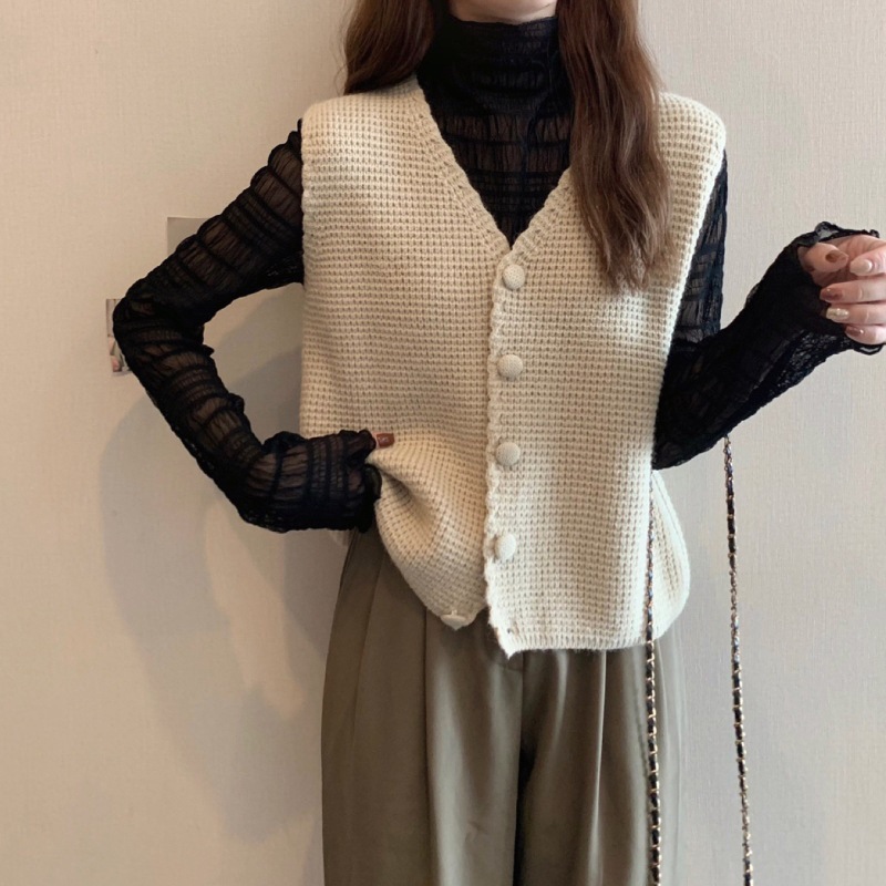 華夫格V領針織開衫 慵懶風坎肩馬甲 秋冬疊穿神器 時尚又實穿 多色可選 隨心搭配