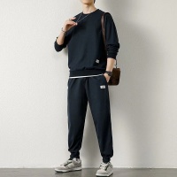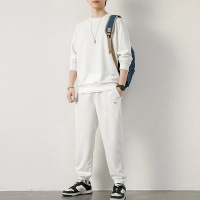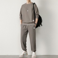 華夫格長袖套裝,男士T恤休閒一套衣服,春秋季潮流純色寬鬆秋裝T恤