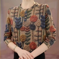 新款時尚德絨印花上衣長袖T恤媽媽裝顯瘦保暖打底減齡上衣