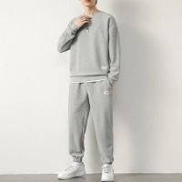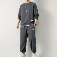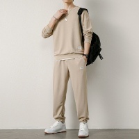華夫格長袖套裝,男士T恤休閒一套衣服,春秋季潮流純色寬鬆秋裝T恤